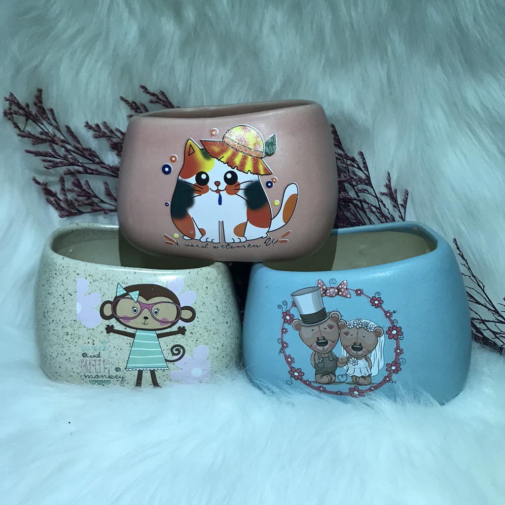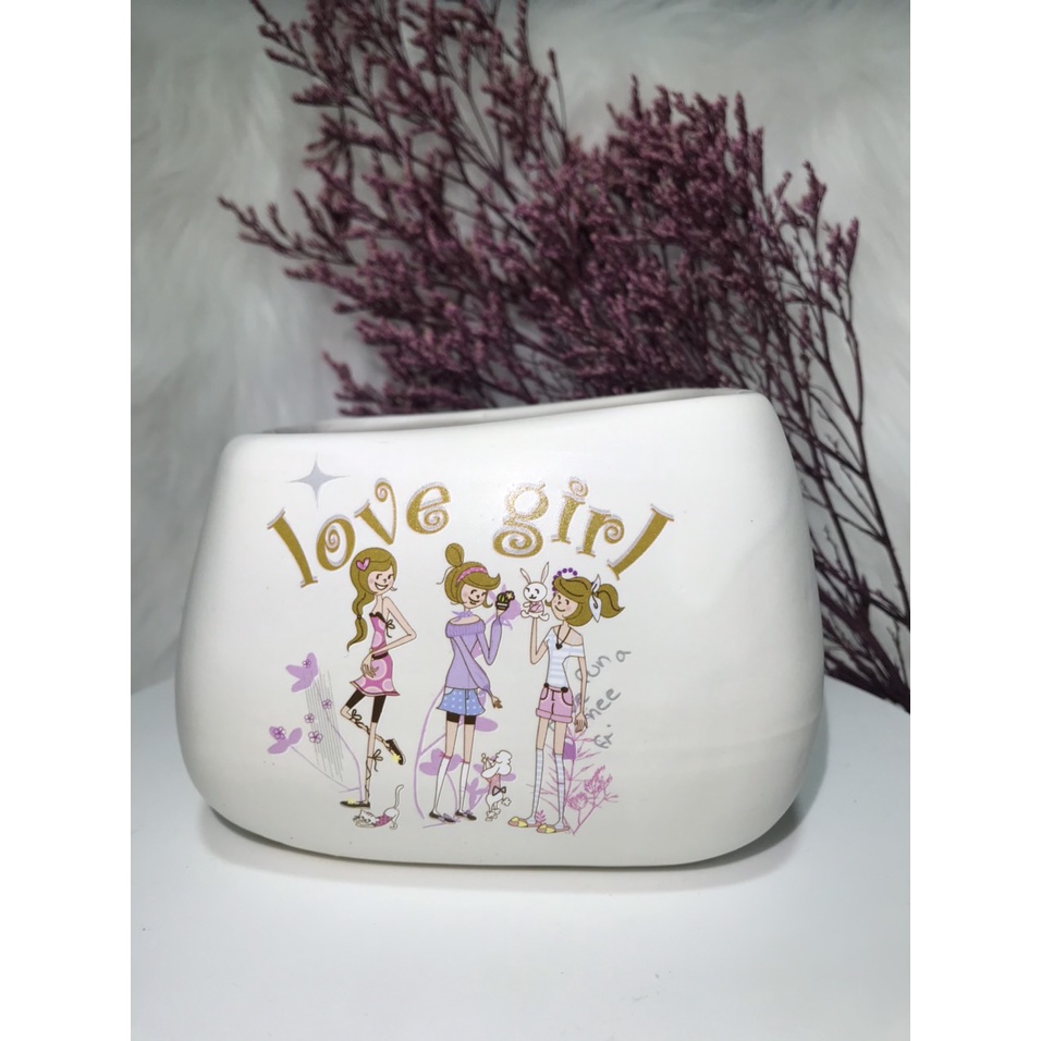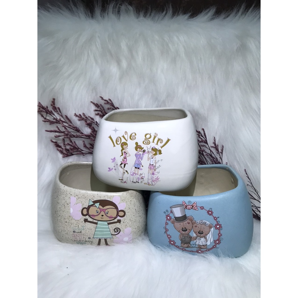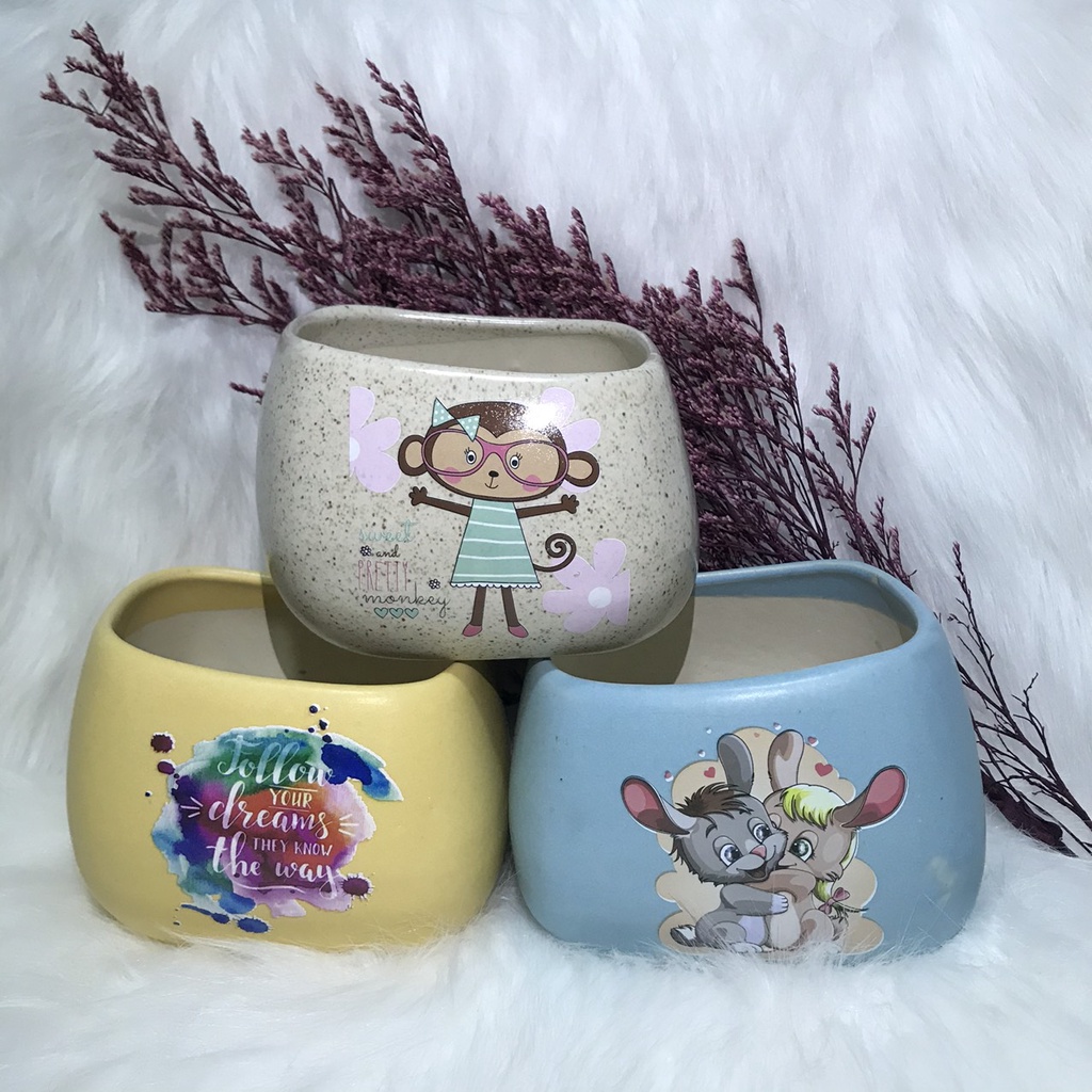 - Chậu men, in hình xinh xắn. Mang lại cảm giác sinh động và sang trọng.