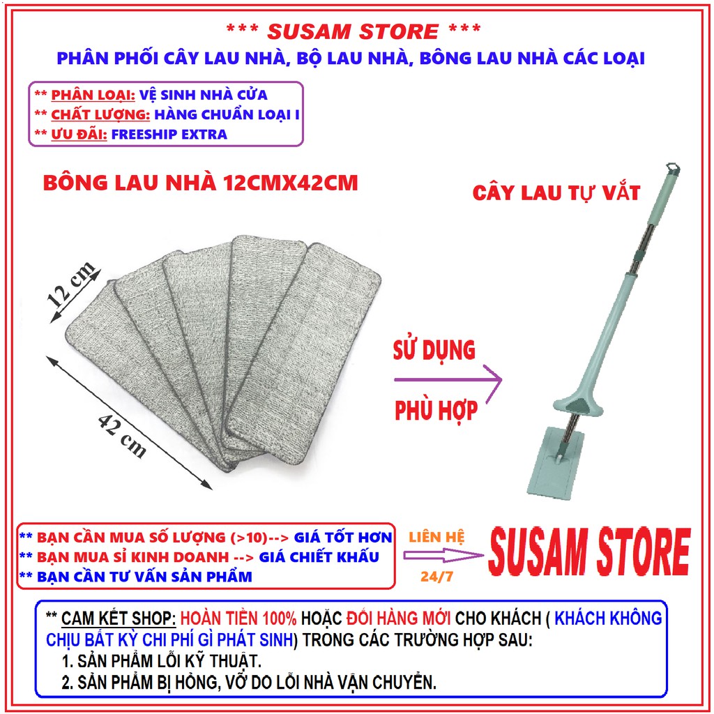 Nhà cửa & Đời sống > Dụng cụ chăm sóc nhà cửa > Cây lau nhà || 12X42 CM BÔNG LAU NHÀ, MIẾNG LAU NHÀ THAY THẾ CÂY LAU NHÀ TỰ VẮT CAO CẤP, HÀNG LOẠI ICòn hàng