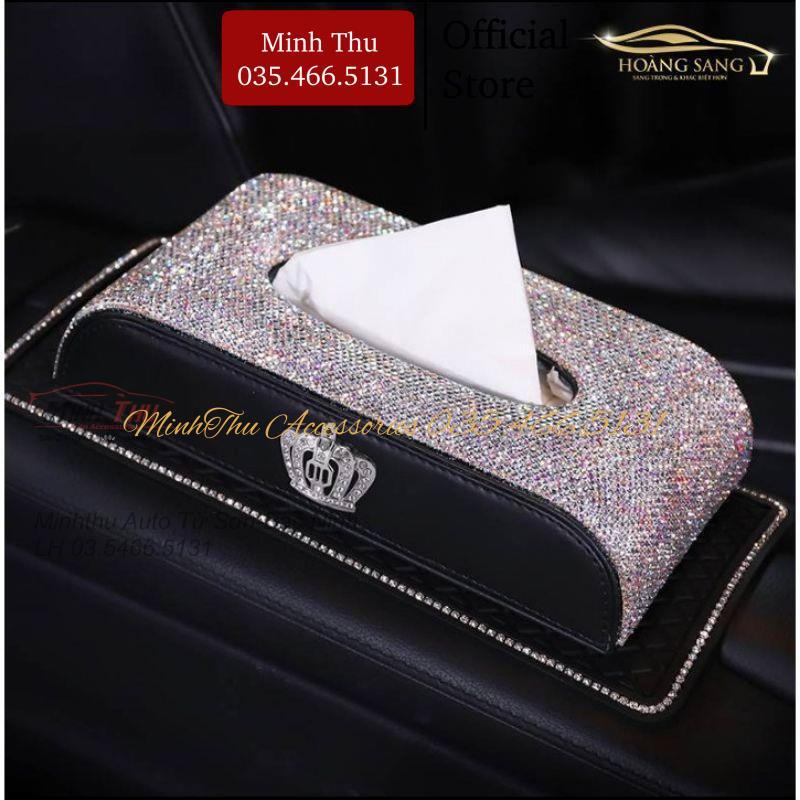 (Full mẫu) Hộp đựng khăn giấy trên ô tô đính đá