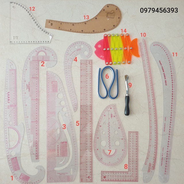 Sở thích & Sưu tầm > Dụng Cụ May Vá || Bộ 13 thước và 1 lăn sang dấu như hìnhCòn hàng