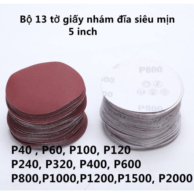 Bộ 13 tờ giấy nhám đĩa siêu mịn 5 inch
