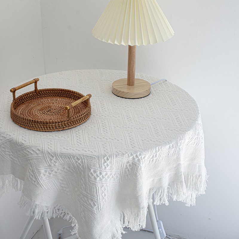 [130*180cm] Khăn trải bàn ren cotton viền tua rua phong cách vintage