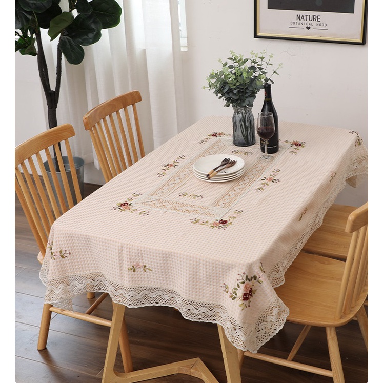 Nhà cửa & Đời sống > Trang trí nhà cửa > Khăn trải bàn || [130*180cm] Khăn trải bàn vải cotton phối ren, hoạ tiết thêu nổi phong cách vintage sang trọng [T049]Còn hàng