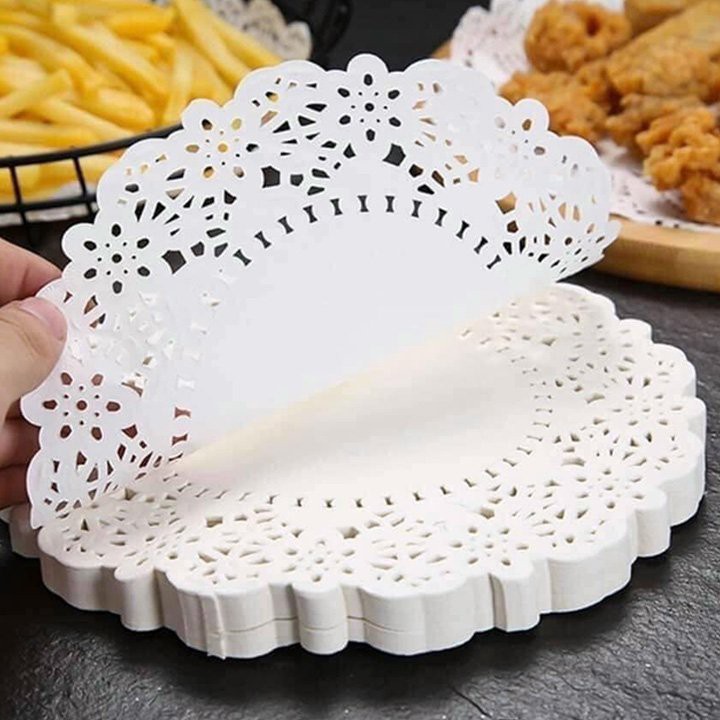 Giới thiệu 140 tờ giấy ren hình tròn màu trắng lót bánh