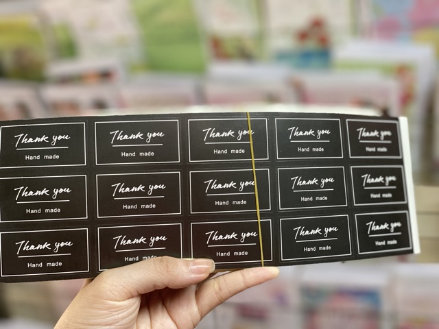 Sản phẩm gồm 15 cái tem dán chữ nhật có chữ Thank youDùng để dán hộp hoặc túi bánh các loại