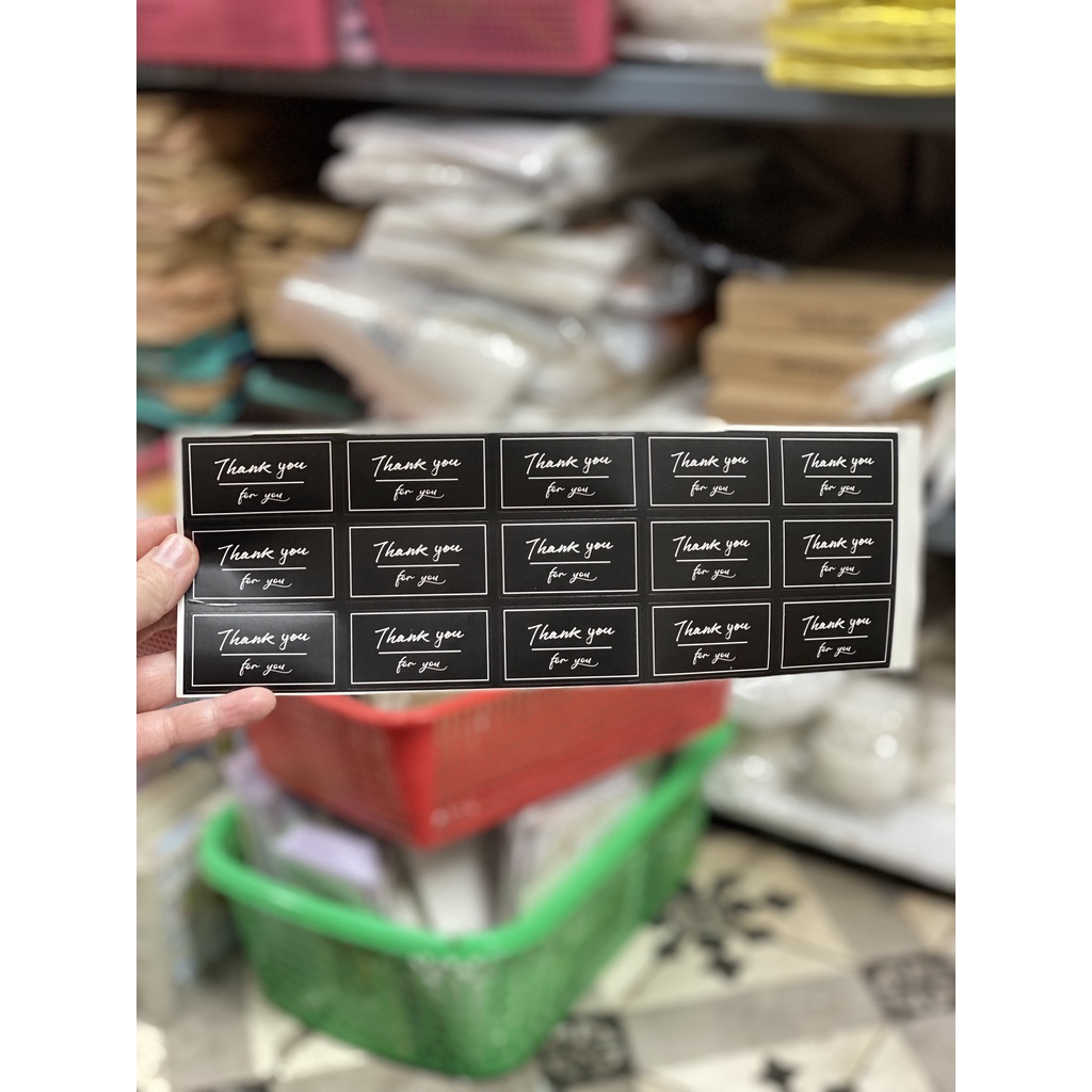 15 cái tem dán chữ nhật Thank you đen để dán hộp hoặc túi bánh các loại