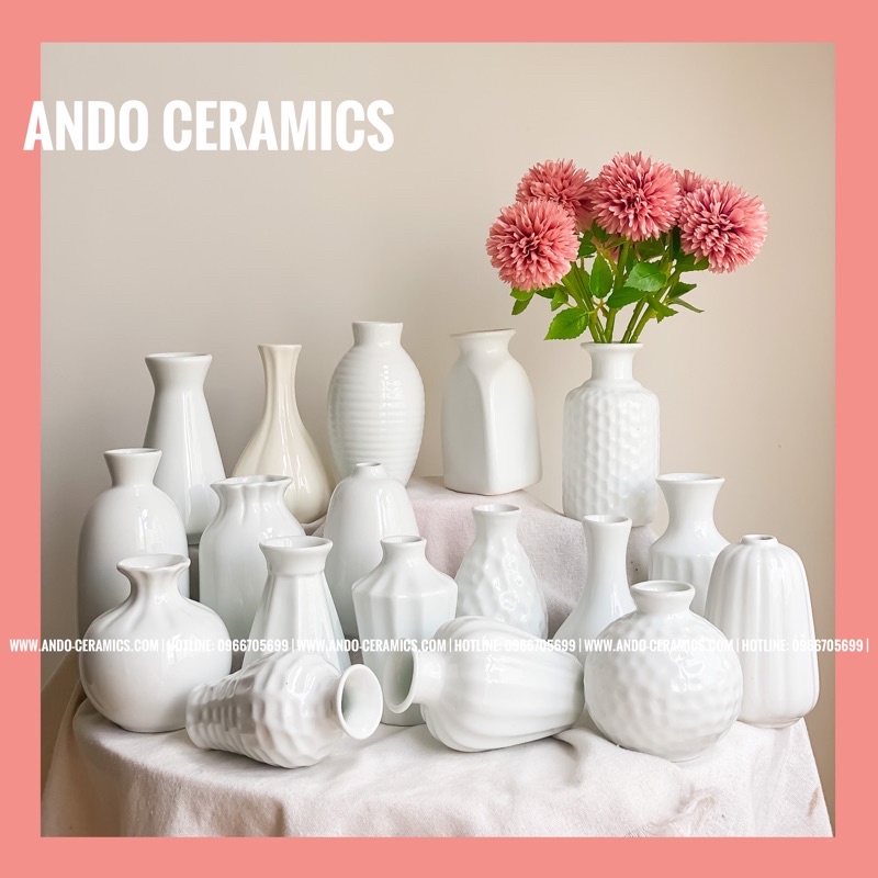 15+ Mẫu Lọ Hoa Mini - Bình Hoa Sứ Trắng hàng decor cắm hoa Bát Tràng