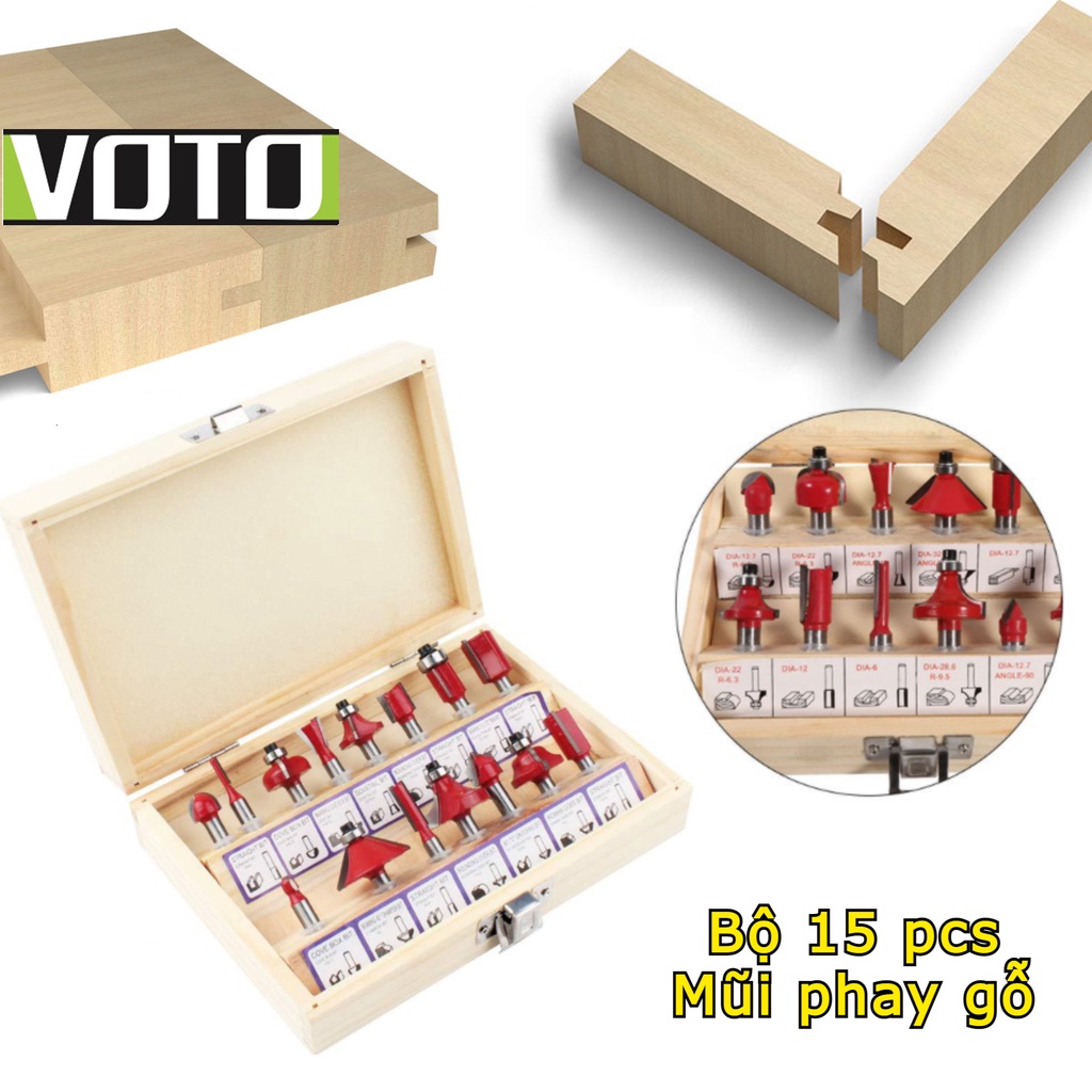 - Bộ mũi phay gỗ 15 món chuyên dùng cho máy phay cầm tay hoặc máy bàn router