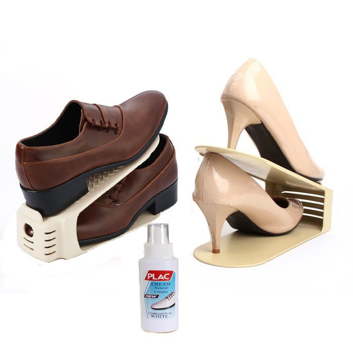Bộ sản phẩm gồm 8 kệ kê giày dép tiện lợi và 1 chai vệ sinh giày dép túi daVừa giúp bảo quản giày sạch sẽ, không bị bóp méo mất dáng vừa giúp tiết kiệm diện tích cho ngôi nhà thêm gọn gàng, ngăn nắp.
