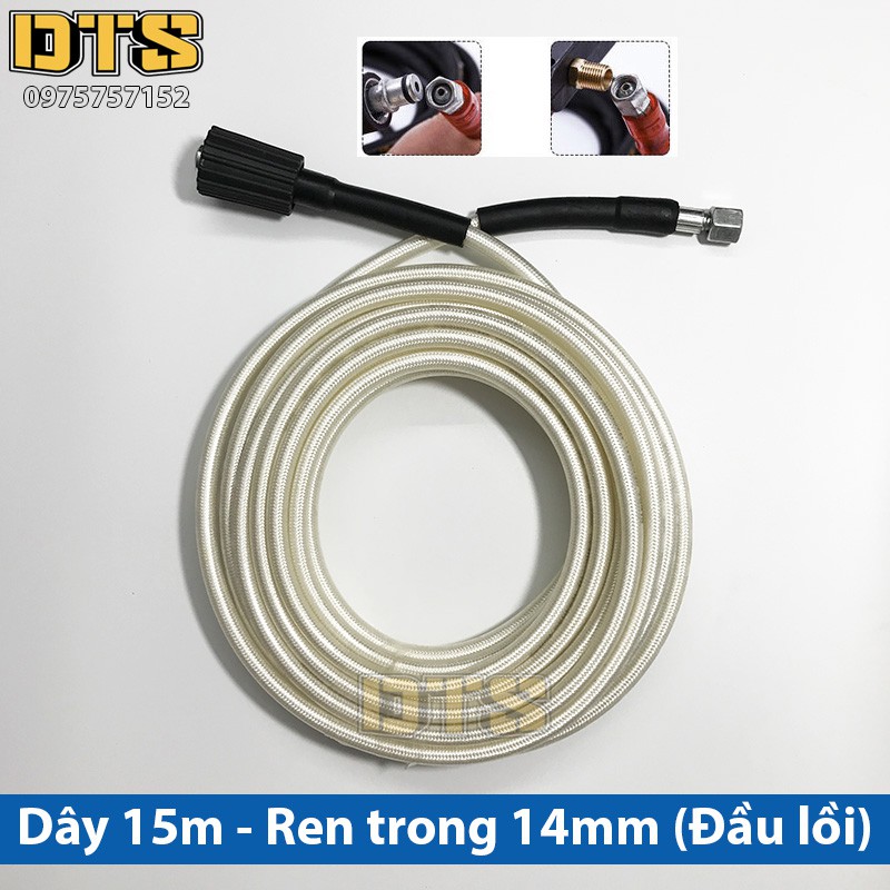 15m Dây rửa xe cao áp cho máy xịt rửa áp lực - Ren trong 14mm_Đầu lồi