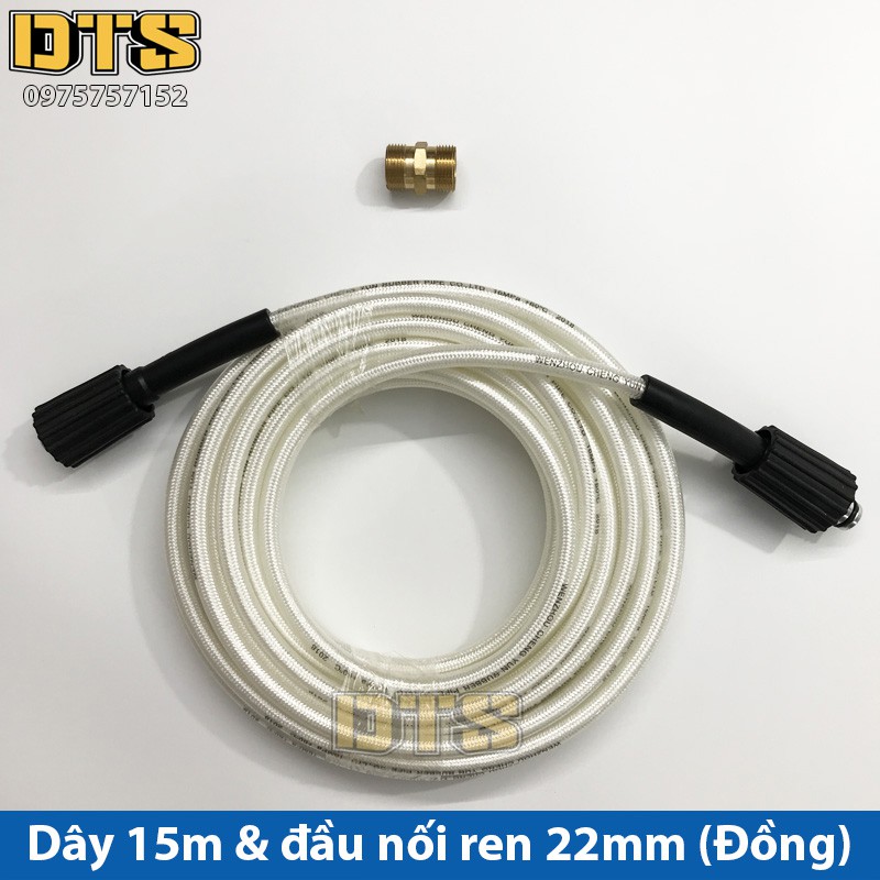 Bộ 15m dây rửa xe nối dài thêm cho máy xịt rửa áp lực - Đầu nối đồng