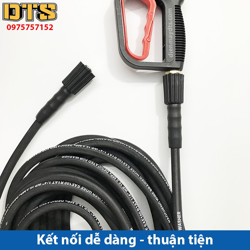 Máy rửa xe ô tô, máy xịt rửa áp lực cao công suất lớn đang là sản phẩm được nhiều cửa hàng, cũng như gia đình lựa chọn sử dụng. Với máy xịt rửa, máy rửa xe áp lực cao bạn có thể dễ dàng rửa xe, cọ rửa sân nhà, trần nhà, vệ sinh đồ dùng trong nhà như tủ bàn ghế hoặc tưới cây,…đều rất tiện lợi. Dây rửa xe là linh kiện không thể thiếu của các loại máy rửa xe, hiện tại trên thị trường có bán rất nhiều loại dây nhưng dây rửa xe lõi thép là sản phẩm có chất lượng cao nhất, trang bị nhiều công nghệ tiên tiến bên trong, phục vụ cho công việc chuyên nghiệp, mang tính đặc thù công việc nặng, làm việc liên tục trong thời gian dài.⌘ Thông tin nổi bật: