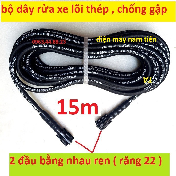 15m Dây xịt rửa, dây rửa xe lõi thép áp lực cao cấp <2 đầu to>
