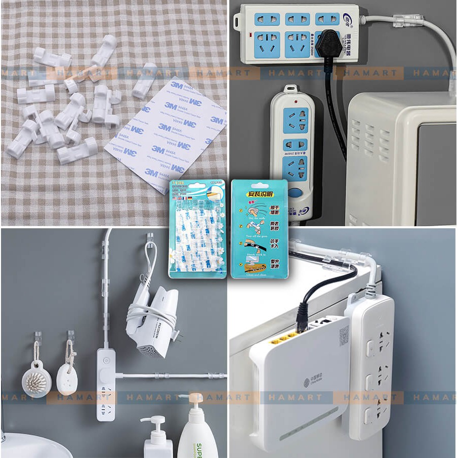 Giới thiệu 16 Kẹp Dây Điện LỚN Dán Tường Chống Rối Móc Treo Dây Cáp Điện TV Tủ Lạnh Keo 3M Siêu Dính