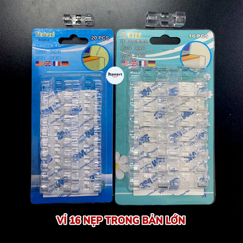 16 Kẹp Dây Điện LỚN Dán Tường Chống Rối Móc Treo Dây Cáp Điện TV Tủ Lạnh Keo 3M Siêu Dính