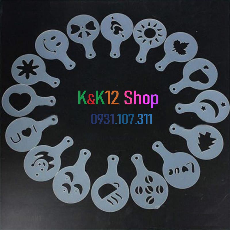 * Bộ 16 khuôn tạo hình xinh xắn trên mặt kem ly cà phê giúp tạo hình nhanh chóng dễ dàng với 16 mẫu khác nhau.