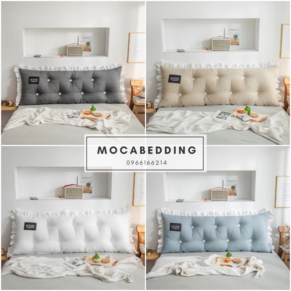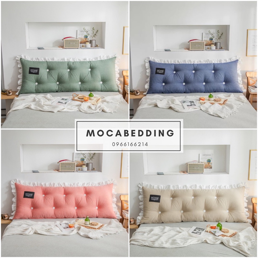 Giới thiệu (16 mẫu) Gối Tựa Đầu Giường Dáng Chữ Nhật Đính Khuy Chất Liệu Đũi Mát 1m5/1m8 - Moca Bedding