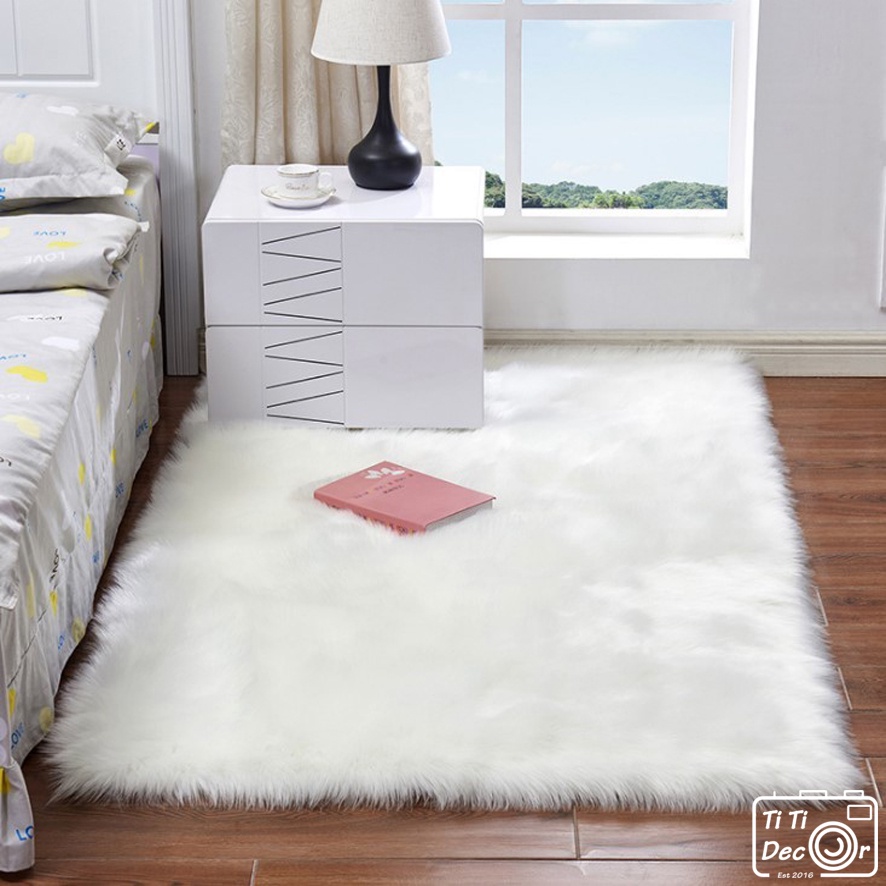 Giới thiệu [160x200cm] Thảm lông trải sàn trang trí nhà cửa - lót phòng - thảm cạnh giuờng ngủ màu trắng Titi Decor