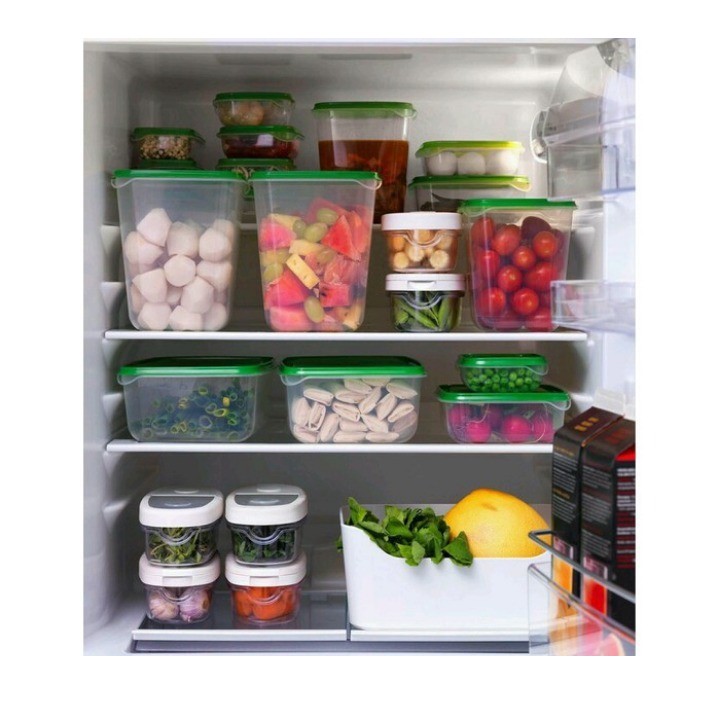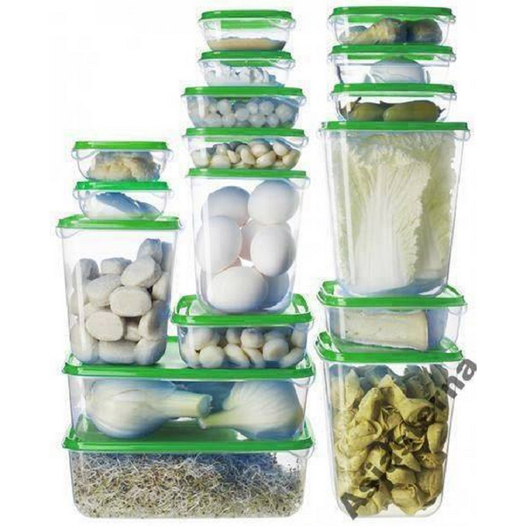 - Bộ sản phẩm gồm 17 hộp đựng với các kích cỡ khác nhau giúp bạn có thể thoải mái đựng các loại thực phẩm sống, chín, đồ khô thật gọn gàng và khoa học.