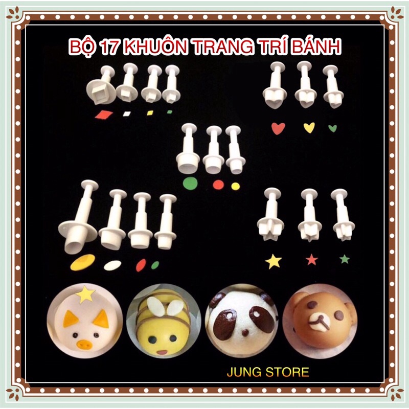 Nhà cửa & Đời sống > Dụng cụ nhà bếp > Dụng cụ nướng & trang trí bánh || Bộ 17 Khuôn nhấn trang trí tạo hình bánh bao, bánh trung thu, bánh mì, fondant, đất sét M271Còn hàng