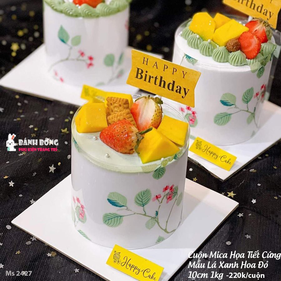Giới thiệu [17 Mẫu] Mica Cuộn bọc bánh Mousse cao 6cm 8cm 10cm loại Dày Cứng Mỏng 1kg - 500g, Mica trong suốt, Hoạ tiết lót bánh
