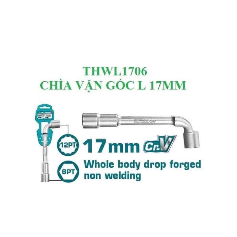 17mm Đầu điếu TOTAL THWL1706 thép Cr-VKích thước: 17mm. Chất liệu: CR-VChìa vặn được đúc nguyên khối, không hànGiống như mức chất lượng FACOM