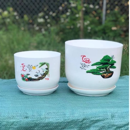 - Chậu nhựa dày, cứng cáp, họa tiết in màu bền, cọ rửa thoải mái k trôi, mẫu chậu có đĩa lót ở đáy sẵn, Có thể tháo rời đĩa ra.