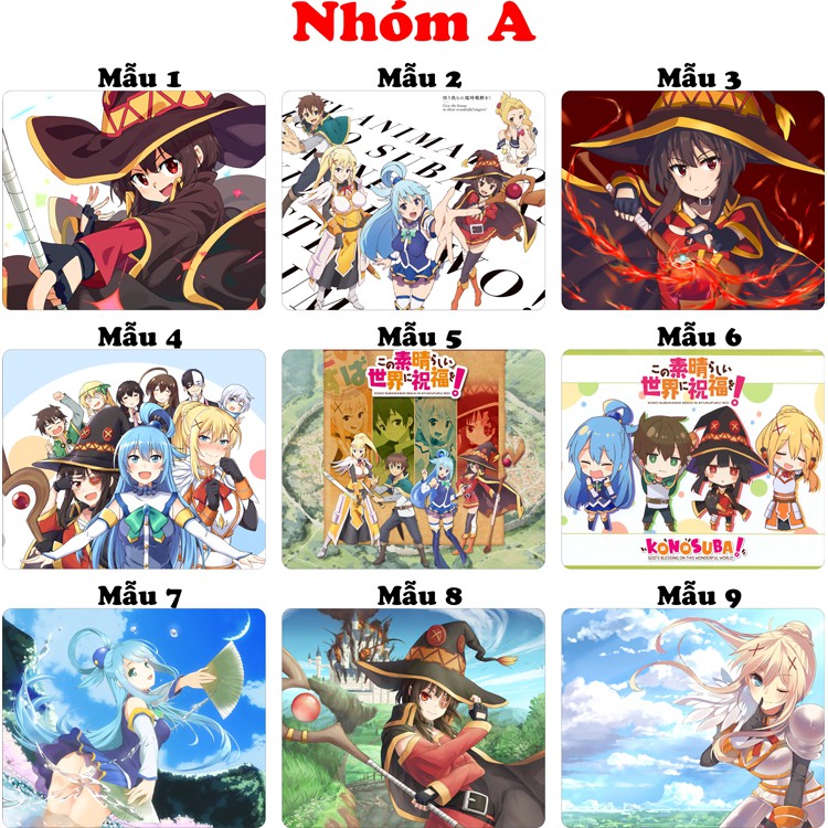 Giới thiệu <18 mẫu>Lót chuột máy tính Anime KonoSuba, Chuunibyou cỡ bàn di chuột lớn 20x24cm chất liệu mouse pad cao su