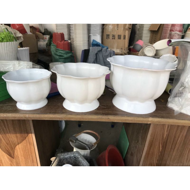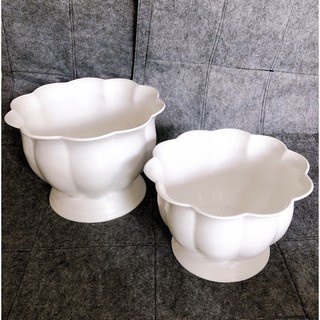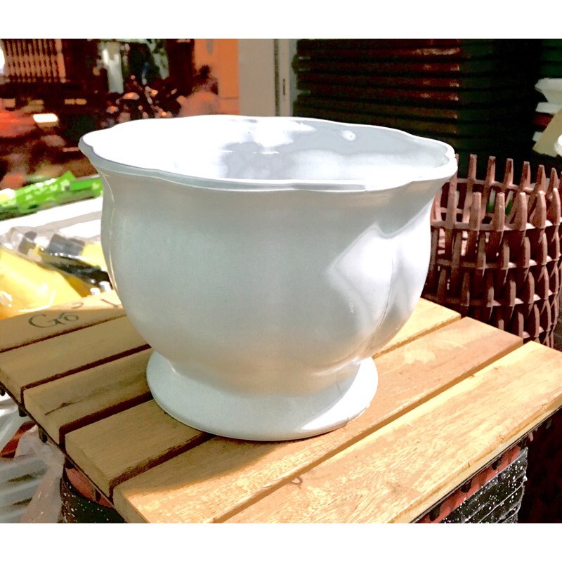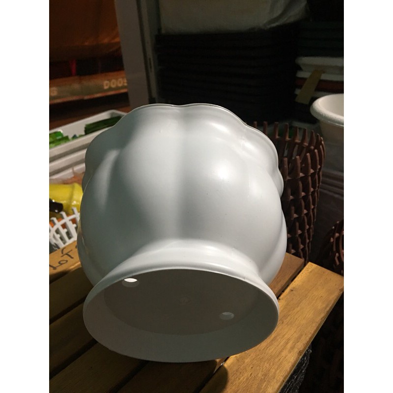 (18x13cm) Chậu nhựa trái bí vành hoa đế cao loại đẹp_Chậu Nhựa cứng cao cấp Để Bàn trồng Hoa cây kiểng- màu sắc : Trắng