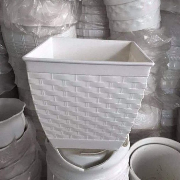 Nhà cửa & Đời sống > Làm vườn > Chậu cây || (18x17cm) Chậu nhựa vuông đan mây trắng cứng cáp, dày, đẹp xịnCòn hàng