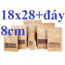 [18x28+8] Túi zipper Kraft 8 cạnh - 50 túi, đáy đứng, cửa sổ, phủ bóng, chống nước, khoảng 195k/kg