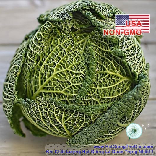 Cải Bắp Nhăn Chịu Nhiệt Savoy (Brassica oleracea var. capitata) OP, 90 ngày, lá nhăn, ngọt, đầu cải to 3 - 4kg, thơm ngon, khi luộc chín không cho mùi sulfur khó chịu như những loại cải bắp khác.Bắp Cải còn được gọi là Cải Bắp, tiếng Anh là Cabbage, tên khoa học là Brassica oleracea, nhóm Capitata, thuộc gia đình Cải Bắp Dại, xuất nguồn từ Châu Âu. Cải Bắp được sắp vào top 10 siêu thực phẩm đạt 96/100 điểm về Chất Lượng Dinh Dưỡng Tổng Thể bởi đại học Yale, mặc dù chỉ đạt 24.51/100 điểm về Độ Cô Đặc Dinh Dưỡng, là nguồn Vitamin C và K tuyệt vời, vượt 20% so với nhu cầu cơ thể hàng ngày; giúp ngăn ngừa ung thư và chống loãng xương; và là nguồn Vitamin B6 và folate mà không có bất kỳ loại rau nào có lượng đáng kể ở đơn vị 100 gr. Cải Bắp còn chứa chất sulforaphane có tác dụng giải độc và chống ung thư ruột già.