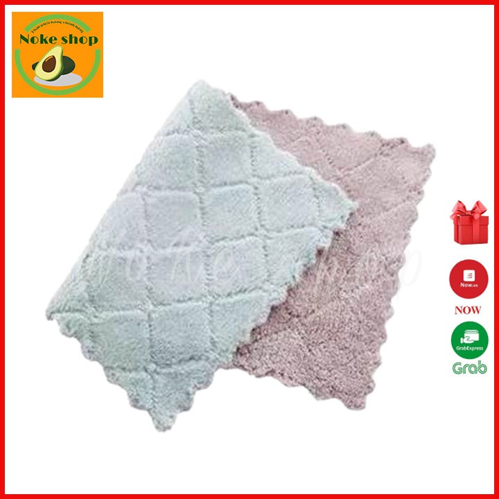 [1K- RẺ VÔ ĐỊCH] Khăn lau đa năng bếp, bát đĩa, cốc chén thấm nước chống dính dầu mỡ hai mặt loại to 15x26cm
