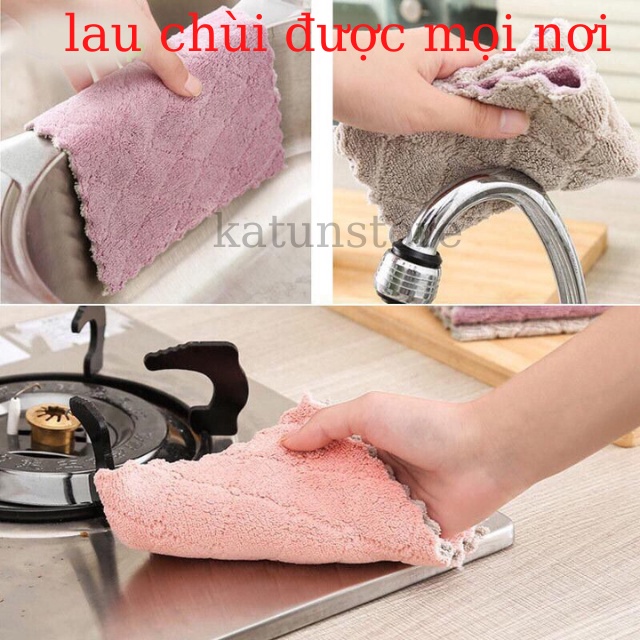 [1K- RẺ VÔ ĐỐI] Khăn Lau Đa Năng Bếp Bát Đĩa Cốc Chén Thấm Nước Chống Dính Dầu Mỡ Hai Mặt Loại To 15x26cm