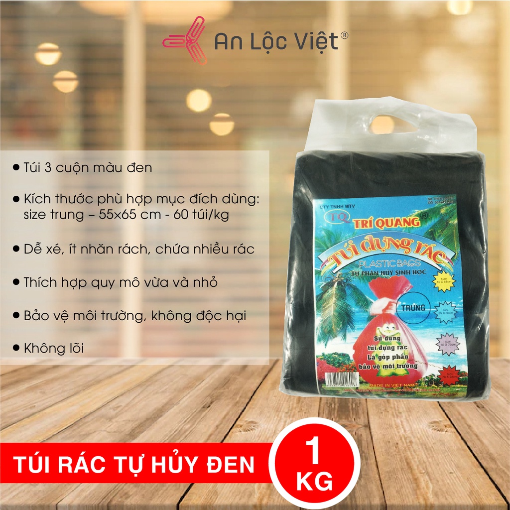 1Kg Bao rác 3 cuộn đen - màu Trí Quang (tự phân hủy)