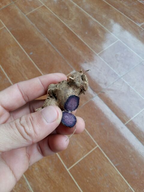 Phần thịt bên trong của thân rễ ( củ ) có màu tím nhạt đến tím đậm.