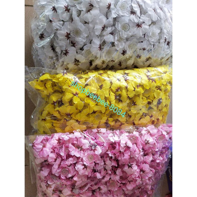 1kg hoa mai hoa đào lụa trang trí ngày Tếtcánh hoa giống thật nhất## phân loại 3 màu như hình## mai vàng # đào hồng# trắng
