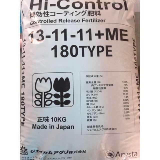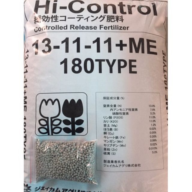 Gói 1kg phân tan chậm Nhật Bản 13-11-11 ME tốt cho mọi cây trồng.Đây là loại phân hóa học tổng hợp được bao bọc bởi một lớp vỏ đặc biệt có tác dụng hòa tan có kiểm soát các thành phần dinh dưỡng. Lớp vỏ này cho phép nước thẩm thấu vào bên trong cũng như cho phép các thành phần dưỡng chất bên trong được giải phóng vào trong đất. Tùy theo mục đích sử dụng mà lớp vỏ này được điều chỉnh để khống chế thời gian giải phóng chất dinh dưỡng vào đất. Hiện tại có 7 chủng loại phân bón của dòng sản phẩm này được bán trên thị trường với thời gian kiểm soát khác nhau là: Type 40, Type70, Type 100, Type 140, Type 180, Type 270 và Type 360. Các con số chỉ ra số ngày tiêu chuẩn mà phân bón sẽ giải phóng 80% lượng Ni-tơ dưới điều kiện nhiệt độ tiêu chuẩn (25 độ C). Ví dụ: Type 40 là loại phân bón có khả năng giải phóng 80% hàm lượng Ni-tơ bên trong, trong vòng 40 ngày dưới điều kiện nhiệt độ tiêu chuẩn là 25 độ C.