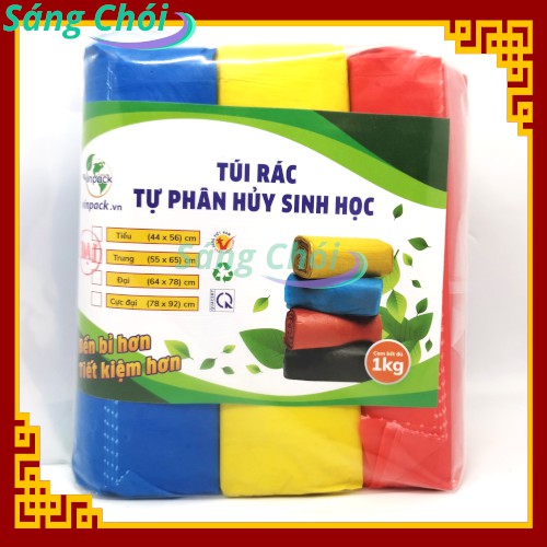 Giới thiệu 1kg [Size Đại 64 x 78 cm Đựng Thùng 12L] Túi Đựng Rác Cuộn Tự Phân Hủy Sinh Học Màu (Túi Rác 3 Cuộn) - Vinpack