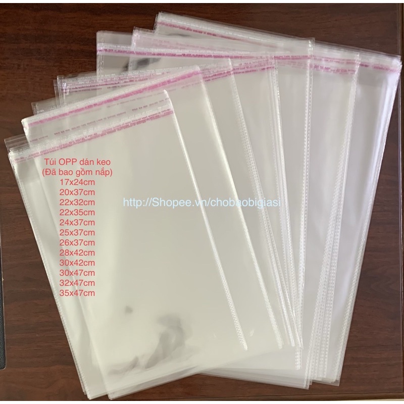 - Chobaobigiasi (CBB) chuyên cung cấp túi OPP dán keo chuyên dùng để đựng quần áo, giày dép phụ kiện, trang sức, khẩu trang nhầm bảo vệ sản phẩm sạch sẽ tránh bán bụi và ẩm ướt.- Túi OPP dán keo có sẵn 12 kích thước sau: