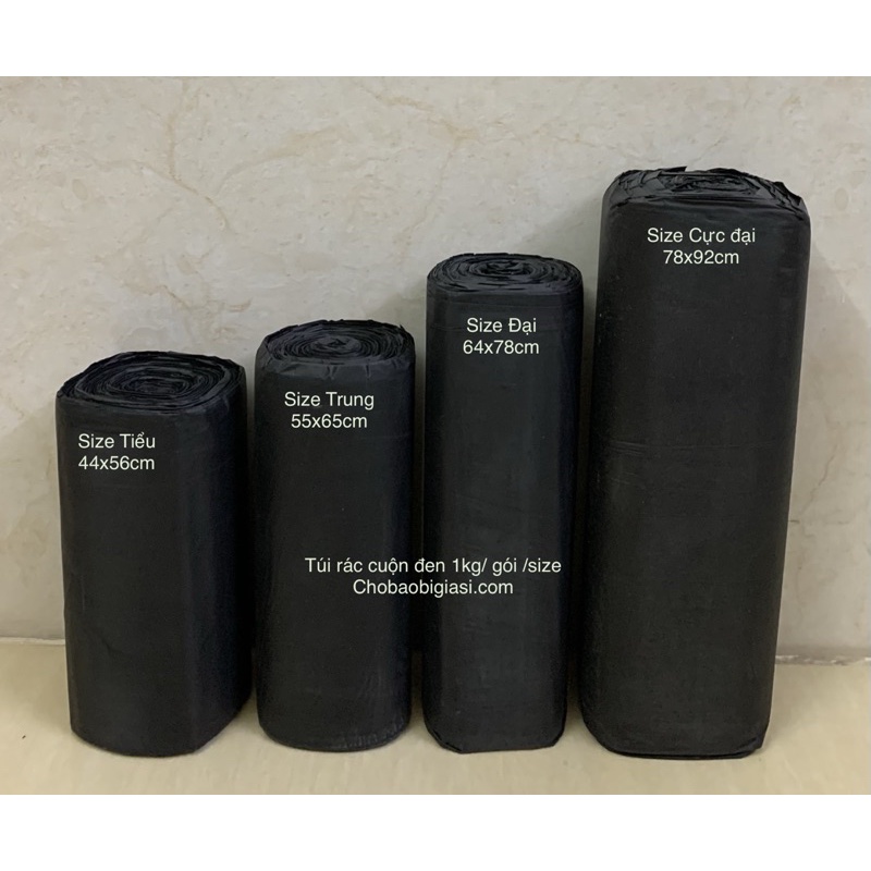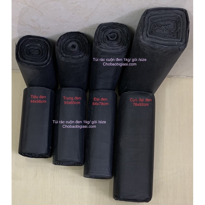 - Chobaobionline chuyên cung cấp túi rác cuộn đen không lõi, bóng, dai chắc, không hôi, được đóng thành từng cuộn nhỏ mỗi cuộn cỡ 300gr, và được đóng thành một bao với khối lượng 1kg.- TÚI RÁC CUỘN ĐEN CÓ SẴN 4 KÍCH THƯỚC NHƯ: