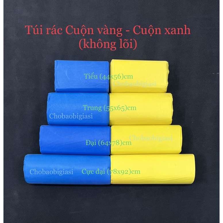 {1kg/size} Túi rác không lõi cuộn xanh, cuộn vàng, cuộn trắng, cuộn đen, cuộn màu (hàng đẹp - sp y hình)