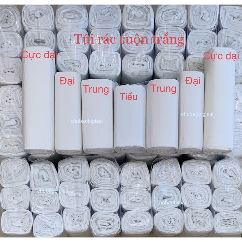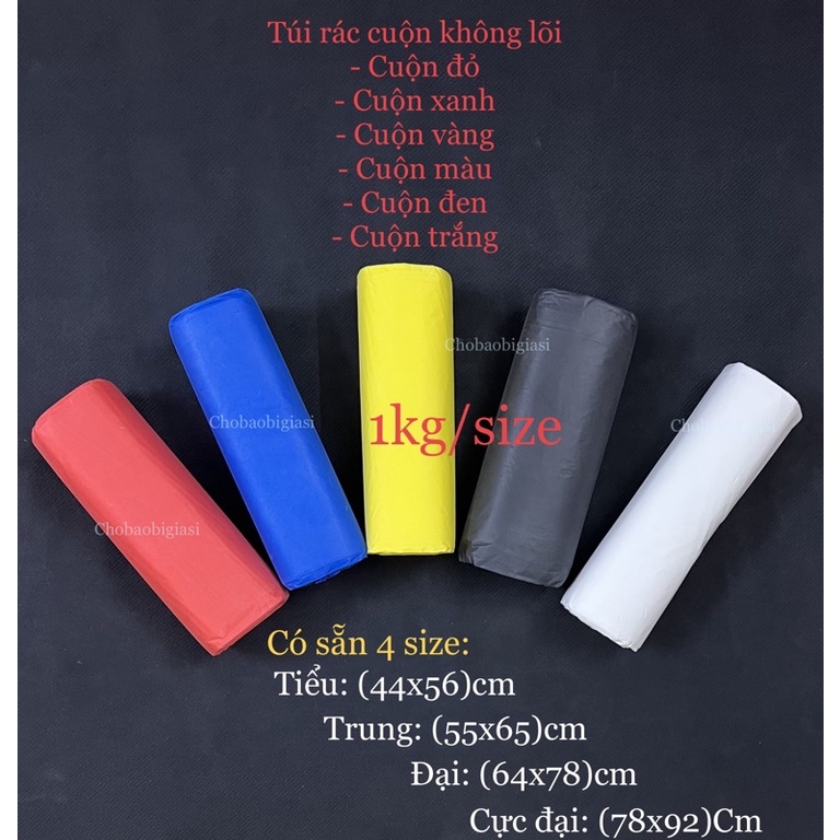 - Chobaobigiasi (CBB) chuyên cung cấp túi rác cuộn không lõi: màu đen, cuộn 3 màu, màu vàng, màu xanh, màu trắng không lõi được đóng thành từng cuộn nhỏ mỗi cuộn cỡ 300gr, và được đóng thành một bao với khối lượng 1kg.- TÚI RÁC CUỘN KHÔNG LÕI CÓ SẴN 4 SIZE NHƯ SAU: