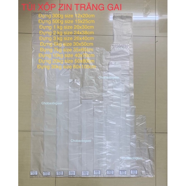 - Chobaobigiasi (CBB) chuyên cung cấp túi xốp zin, túi hai quai trắng trong dùng để đựng thuốc tây, đựng rau củ quả, đựng thịt, đựng quần áo, đựng trái cây….- Túi xốp zin hai quai có sẵn các kích thước thước sau: