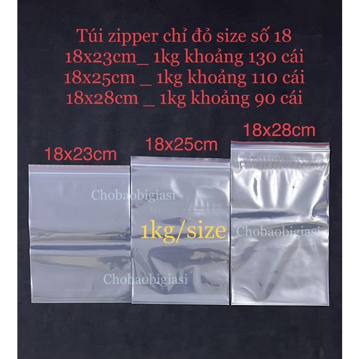 {1kg/size} Túi zipper chỉ đỏ size 18 (18x23cm, 18x25cm, 18x28cm) dày dặn, chắc chắn (hàng đẹp, sp y hình)