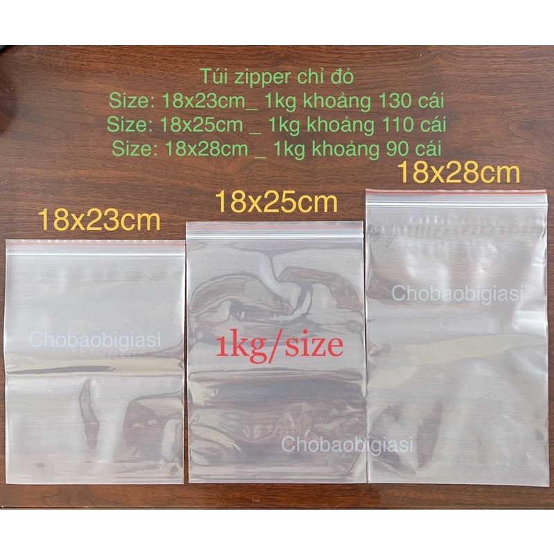 Nhà cửa & Đời sống > Dụng cụ chăm sóc nhà cửa > Túi nilon & túi rác || {1kg/size} Túi zipper chỉ đỏ size 18x23cm, 18x25cm, 18x23cm hàng đẹp, dày, chắc, dai (sp y hình)Còn hàng
