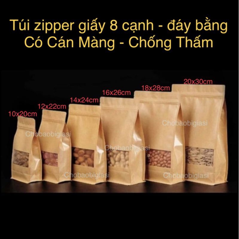Nhà cửa & Đời sống > Dụng cụ chăm sóc nhà cửa > Túi nilon & túi rác || {1kg/ size} Túi zipper giấy Kraft đáy bằng 8 CẠNH cửa sổ tràn có CÁN MÀNG - CHỐNG THẤM NƯỚC (sp y hình)Còn hàng