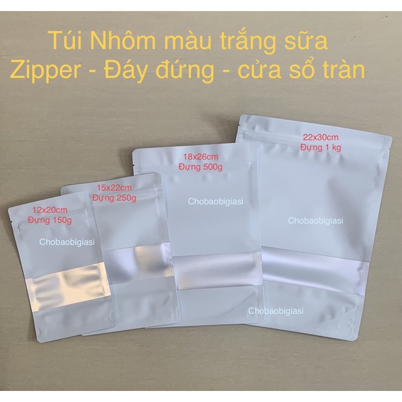 {1kg/size} Túi zipper Nhôm màu trắng sữa, cửa sổ tràn sang trọng (SP y hình)