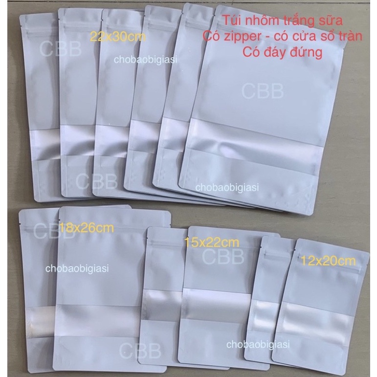 Nhà cửa & Đời sống > Dụng cụ chăm sóc nhà cửa > Túi nilon & túi rác || {1kg/size} Túi zipper Nhôm màu trắng sữa, cửa sổ tràn sang trọng (SP y hình)Còn hàng