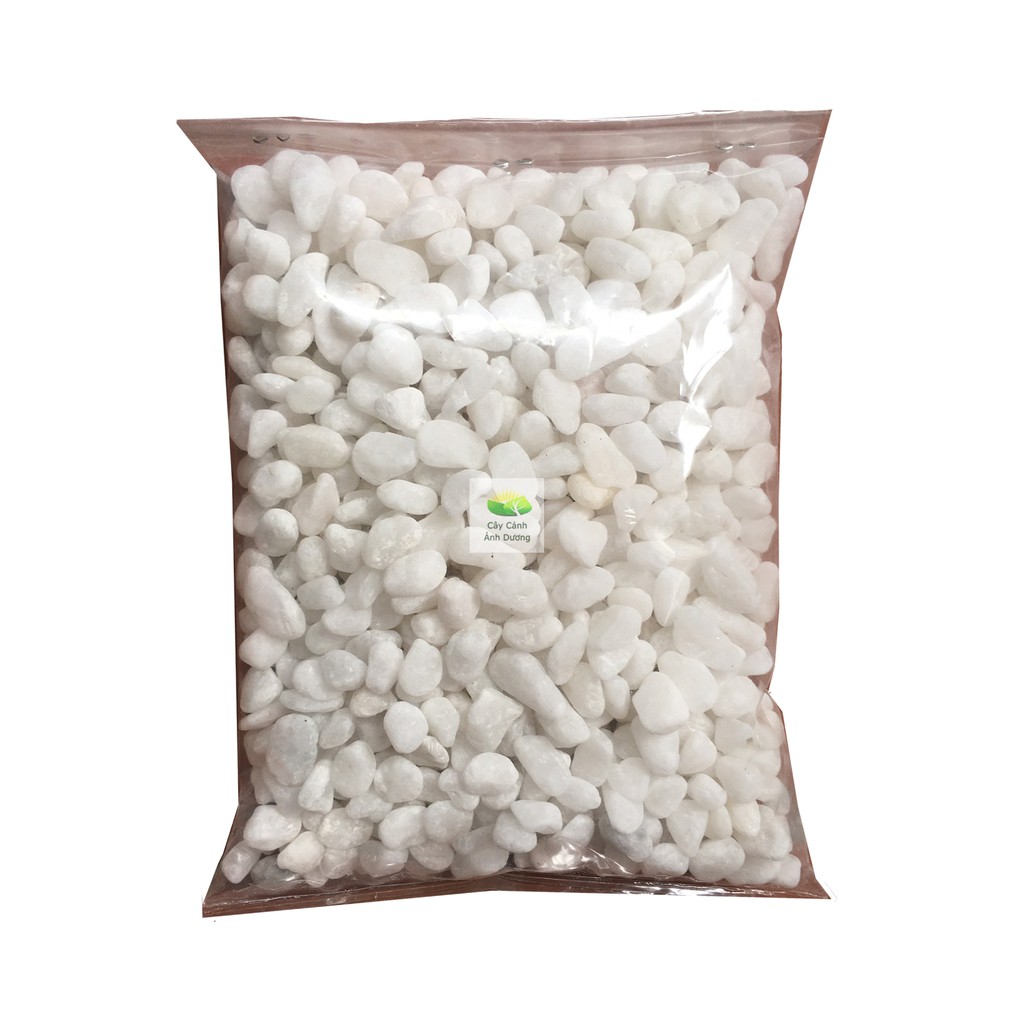 Sỏi trắng nhân tạo kích cỡ vừa (khoảng 2cm) phù hợp rải mặt chậu cây trang trí, giúp tăng vẻ thẩm mỹ cho không gian sống của bạnĐóng gói nhỏ 1 túi 1kg